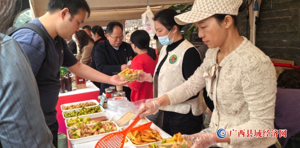现场展销区琳琅满目,每一件好物都承载着广西的风土人情与工匠智慧。博白李记酸料摊位前人气鼎盛,这里不仅能品尝到酸爽开胃的成品酸料,更能亲自体验用正宗秘酱拌制水果的奇妙过程——新鲜脆嫩的果蔬搭配传承多年的秘制酱料,拌匀间酸甜鲜香的气息扑面而来,让每一位体验者都能感受这份从博白创始之地流淌出的纯粹风味;天等指天椒的鲜辣醇厚、崇左澳洲坚果的香脆饱满、古法红糖的温润甘甜,一众乡土风味唤醒舌尖记忆;钦州坭兴陶的古朴肌理、武宣石头画的山水意境、藤县醒狮文创的灵动俏皮、铃声手工盆景的自然意趣,手工好物尽显巧思匠心;麽乜非遗制作的祈福寓意、东兴桂皮雕刻的精雕细琢、苗族银饰锻造的流光溢彩、绣球编织的精巧纹样、藤编技艺的经纬交织,多项非遗技艺以活态形式精彩呈现;瑶社六堡茶的陈香醇厚、龙脊古树茶叶的鲜爽回甘、横州茉莉花茶的清雅芬芳,茶香萦绕间更添雅致。丰富多元的展销品类与互动体验,全方位展现了广西乡村工匠的精湛技艺,也搭建起工匠与市场无缝对接的坚实桥梁。